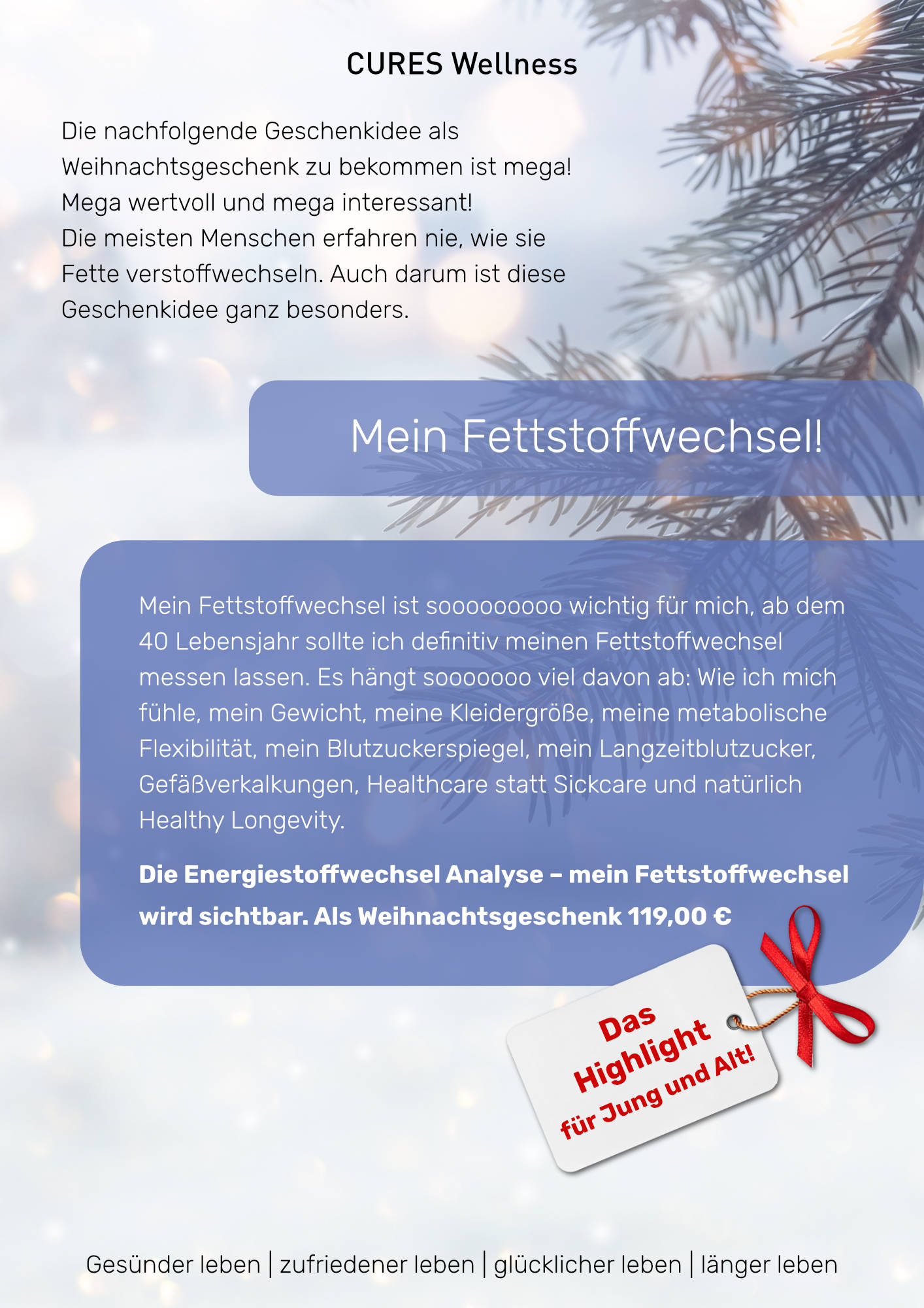 Warum verschenke ich nicht zu Weihnachten mal etwas ganz Besonderes - „ein Stück Gesundheit“ oder „Ich lasse mich damit beschenken.“