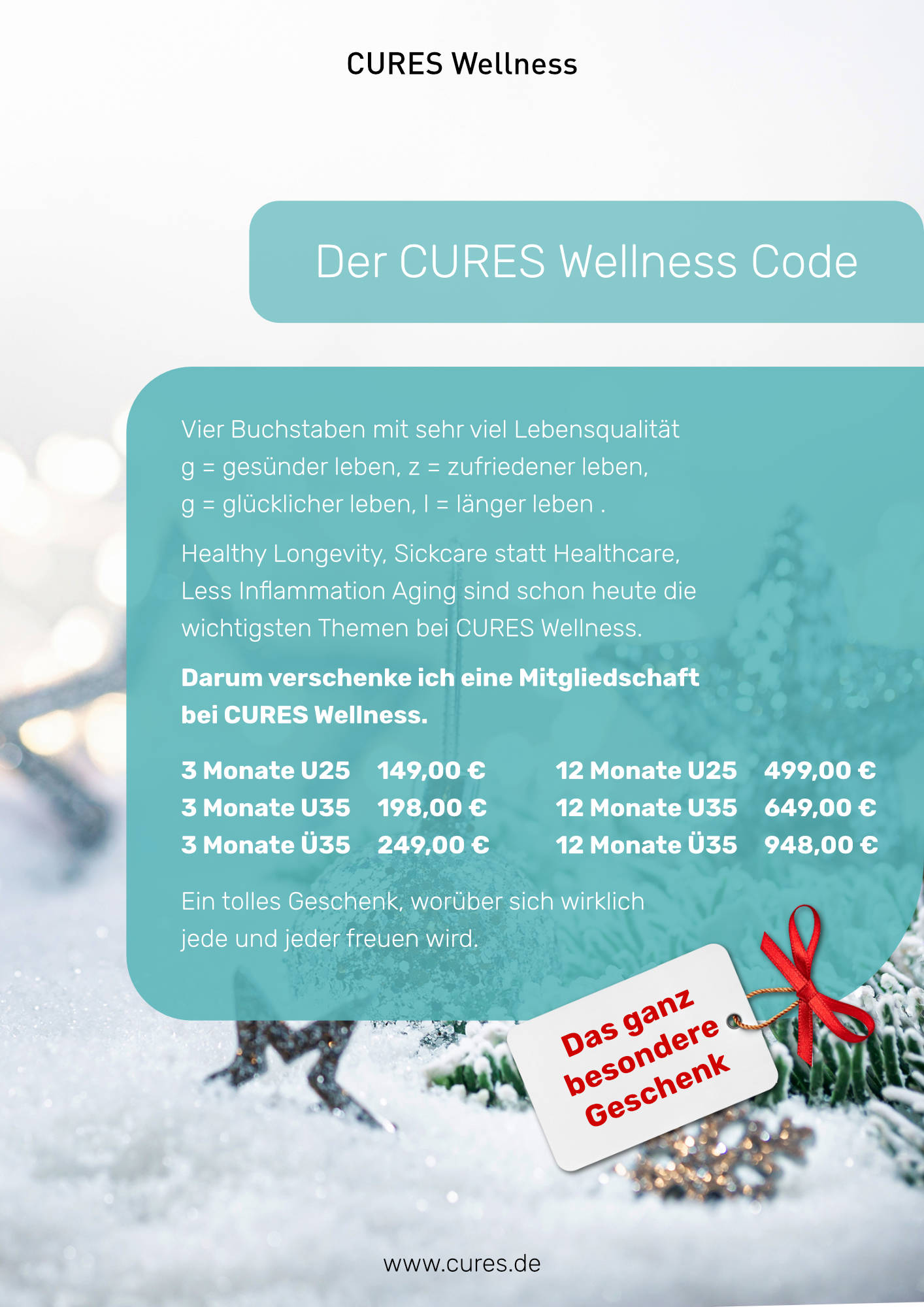 CURES Wellness bietet Geschenke zu Weihnachten, die Menschen gut tun!